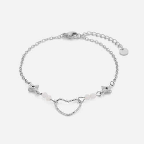 Diese Armband Herz Stern Silber ist aus hochwertigem Edelstahl gefertigt. Die Länge des Armbands beträgt 16 cm und kann auf 21 cm angepasst werden. Dies ist ideal, um eine freundschaftliche oder romantische Beziehung zu bekräftigen.