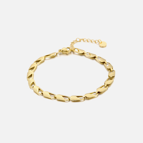 Diese Armband klassischer Gliederstruktur Gold ist aus hochwertigem Edelstahl gefertigt. Die Länge des Armbands beträgt 16 cm und kann auf 21 cm angepasst werden. Die Breite der Glieder beträgt 4 mm und die Länge 9 mm. Diese Armband ist perfekt, um all Ihren Looks einen Hauch von Raffinesse zu verleihen. Langlebig, stilvoll und angenehm zu tragen, ist sie ein Muss für jede moderne Garderobe.