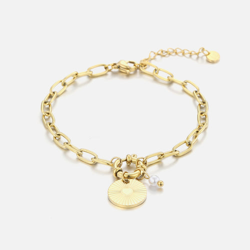 Diese Armband mit Münze und Perle Gold ist aus hochwertigem Edelstahl gefertigt. Die Länge des Armbands beträgt 16 cm und kann auf 21 cm angepasst werden. Diese Armband ist perfekt, um all Ihren Looks einen Hauch von Raffinesse zu verleihen. Langlebig, stilvoll und angenehm zu tragen, ist sie ein Muss für jede moderne Garderobe.