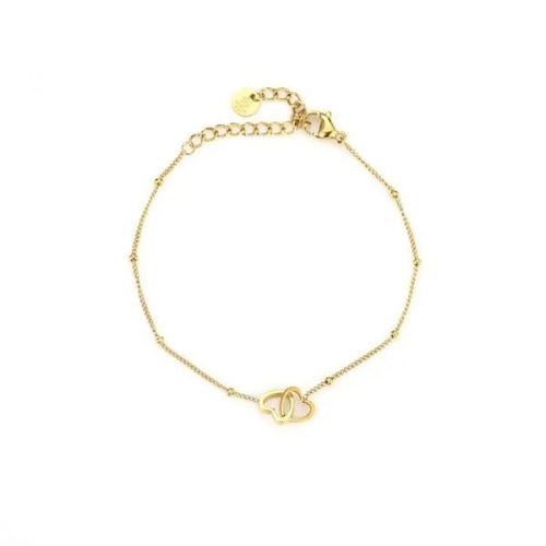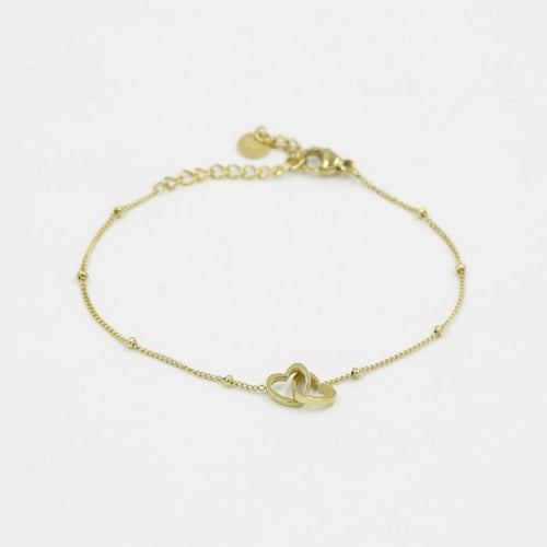 Diese Armband mit verbundenen Herzen in Gold ist aus hochwertigem Edelstahl gefertigt. Die Länge des Armbands beträgt 16 cm und kann auf 21 cm angepasst werden. Dies ist ideal, um eine freundschaftliche oder romantische Beziehung zu bekräftigen.