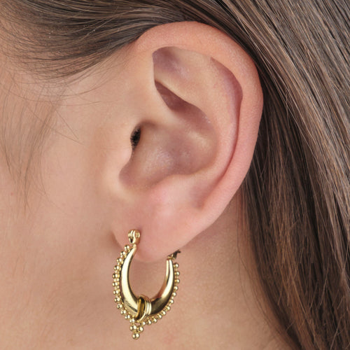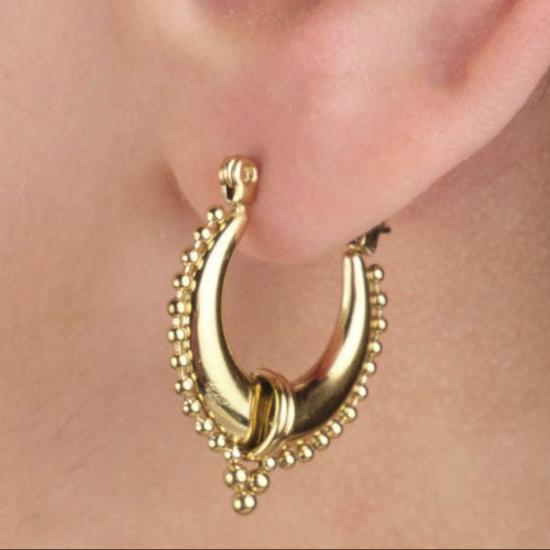 Diese Bali breeze Ohrringe Gold sind aus hochwertigem Edelstahl gefertigt. Die Ohrringe sind 2,5 cm lang. Diese Ohrringe sind perfekt, um all Ihren Looks einen Hauch von Raffinesse zu verleihen. Langlebig, stilvoll und angenehm zu tragen, ist sie ein Muss für jede moderne Garderobe.