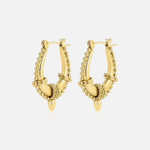Diese Bali glow Ohrringe Gold sind aus hochwertigem Edelstahl gefertigt. Die Ohrringe sind 2,9 cm lang. Diese Ohrringe sind perfekt, um all Ihren Looks einen Hauch von Raffinesse zu verleihen. Langlebig, stilvoll und angenehm zu tragen, ist sie ein Muss für jede moderne Garderobe.