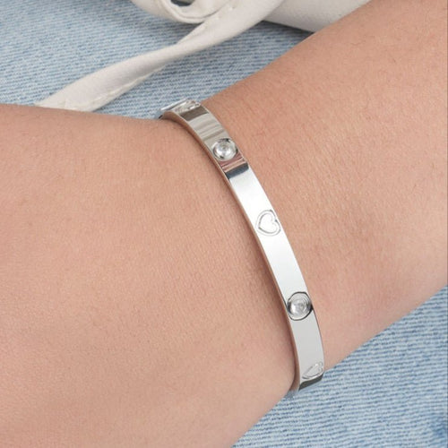 Diese Bangle mit Herzchen Silber ist aus hochwertigem Edelstahl gefertigt. Dieser Bangle hat die Maße 50×60 mm. Dies ist ideal, um eine freundschaftliche oder romantische Beziehung zu bekräftigen.