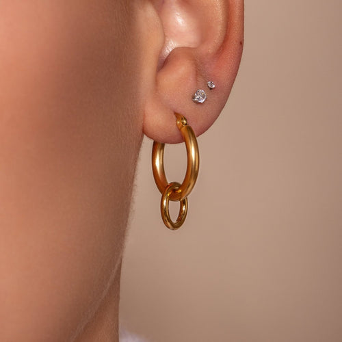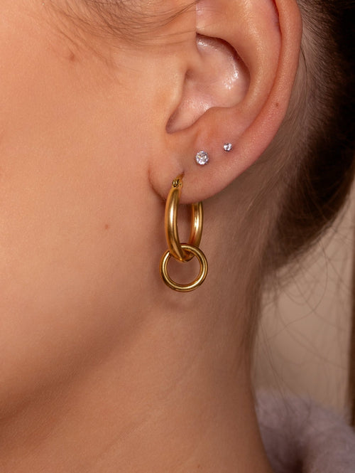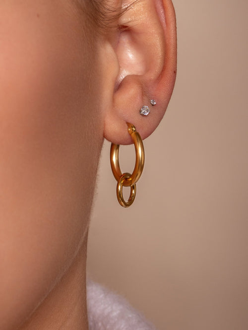 Diese Basic Doppelte Ohrringe Gold sind aus hochwertigem Edelstahl gefertigt. Diese Ohrringe sind perfekt, um all Ihren Looks einen Hauch von Raffinesse zu verleihen. Langlebig, stilvoll und angenehm zu tragen, ist sie ein Muss für jede moderne Garderobe.