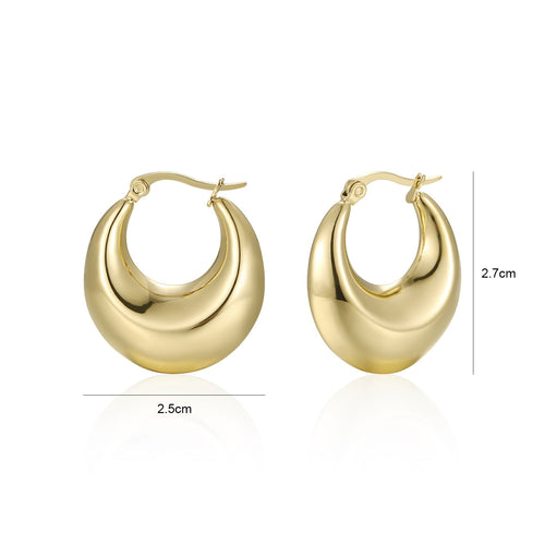 Diese Chunky Ohrringe Gold sind aus hochwertigem Edelstahl gefertigt. Diese Ohrringe sind 2,7 cm lang und 2,5 cm breit. Diese Ohrringe ist perfekt, um all Ihren Looks einen Hauch von Raffinesse zu verleihen. Langlebig, stilvoll und angenehm zu tragen, ist sie ein Muss für jede moderne Garderobe.