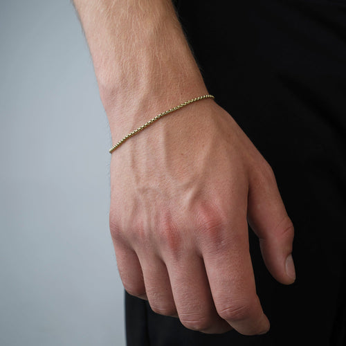 Diese Collier Armband 4 mm Gold Herren ist aus hochwertigem Edelstahl gefertigt. Die Länge des Armbands beträgt 19 cm und kann auf 23 cm angepasst werden.