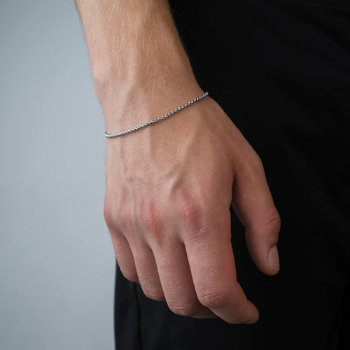 Diese Collier Armband 2 mm Silber Herren ist aus hochwertigem Edelstahl gefertigt. Die Länge des Armbands beträgt 19 cm und kann auf 23 cm angepasst werden.