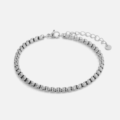 Diese Collier Armband 4 mm Silber Herren ist aus hochwertigem Edelstahl gefertigt. Die Länge des Armbands beträgt 19 cm und kann auf 23 cm angepasst werden.