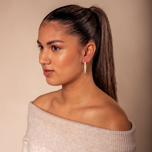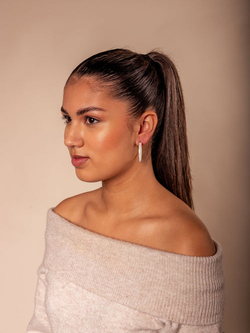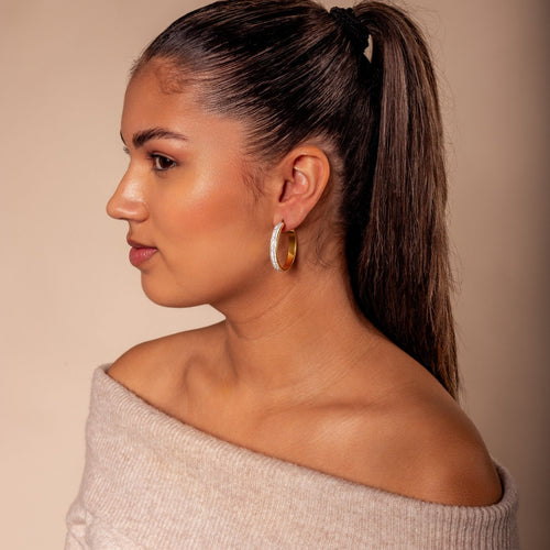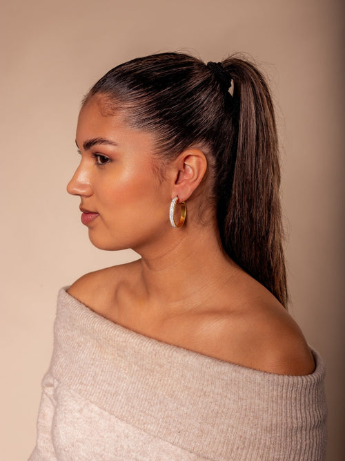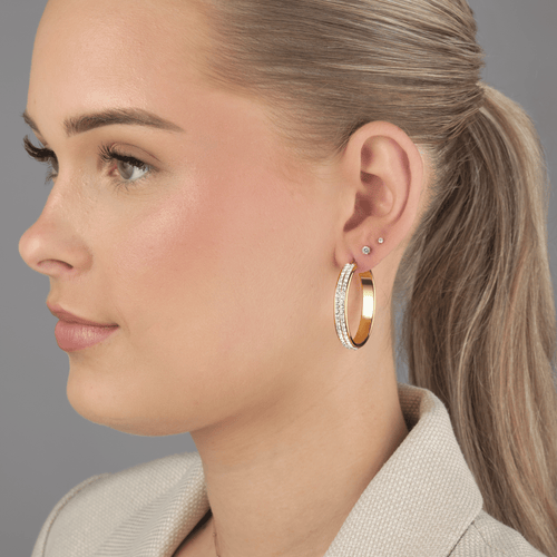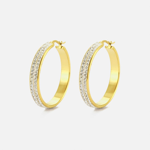 Diese Creolen Strass Gold groß sind aus hochwertigem Edelstahl gefertigt. Diese Ohrringe haben eine Länge von 3.2 cm. Diese Ohrringe ist perfekt, um all Ihren Looks einen Hauch von Raffinesse zu verleihen. Langlebig, stilvoll und angenehm zu tragen, ist sie ein Muss für jede moderne Garderobe.
