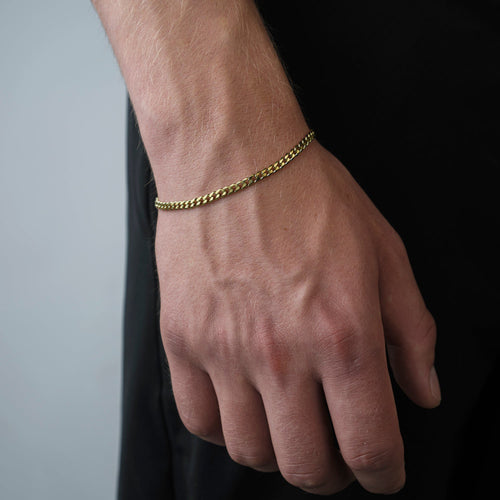 Diese Cuban Armband 4 mm Gold Herren ist aus hochwertigem Edelstahl gefertigt. Die Länge des Armbands beträgt 19 cm und kann auf 23 cm angepasst werden.