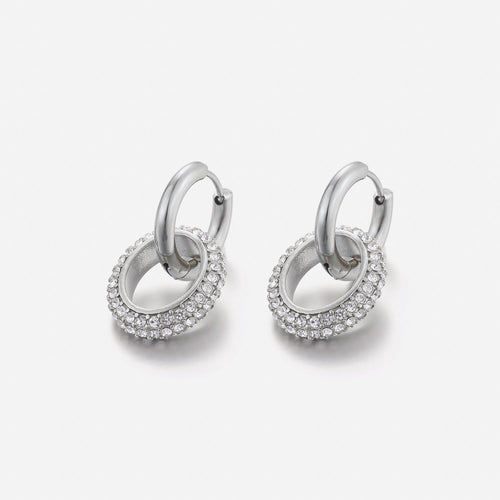 Diese Doppelte Ohrringe mit Strass Silber sind aus hochwertigem Edelstahl gefertigt. Diese Ohrringe sind perfekt, um all Ihren Looks einen Hauch von Raffinesse zu verleihen. Langlebig, stilvoll und angenehm zu tragen, ist sie ein Muss für jede moderne Garderobe.
