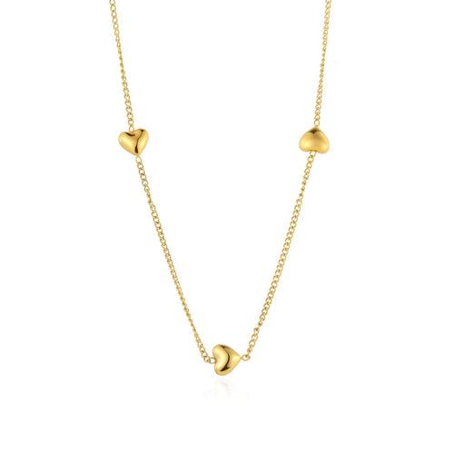 Diese Halskette Fancy Herzen Gold ist aus hochwertigem Edelstahl gefertigt. Die Länge der Kette ist 40cm lang und kann auf 45cm verstellt werden. Diese Halskette ist perfekt, um all Ihren Looks einen Hauch von Raffinesse zu verleihen. Langlebig, stilvoll und angenehm zu tragen, ist sie ein Muss für jede moderne Garderobe.