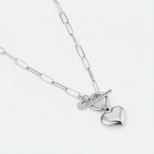 Diese Halskette Kapitell Herz Silber ist aus hochwertigem Edelstahl gefertigt. Die Länge der Kette ist 40cm lang und kann nicht verstellt werden. Dies ist ideal, um eine freundschaftliche oder romantische Beziehung zu bekräftigen.