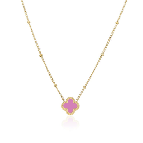 Diese Kleeblatt Halskette Gold/rosa ist aus hochwertigem Edelstahl gefertigt. Die Länge der Kette beträgt 40 cm und kann auf 45 cm eingestellt werden. Kleeblattschmuck ist derzeit sehr beliebt. Erweitern Sie Ihre Modeaccessoire-Kollektion mit der Kleeblatt-Halskette Gold.