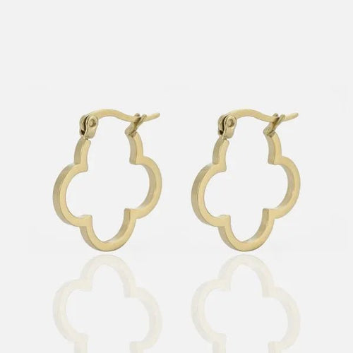 Diese Kleeblatt Hoops Gold sind aus hochwertigem Edelstahl gefertigt. Die Ohrringe sind 2 cm lang. Diese Ohrringe sind perfekt, um all Ihren Looks einen Hauch von Raffinesse zu verleihen. Langlebig, stilvoll und angenehm zu tragen, ist sie ein Muss für jede moderne Garderobe.