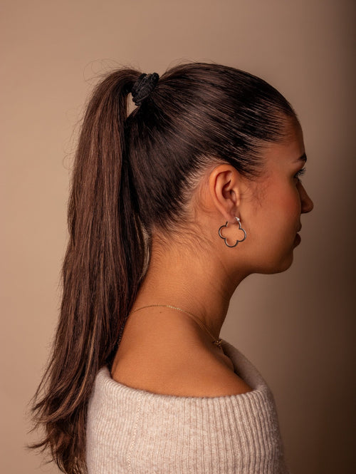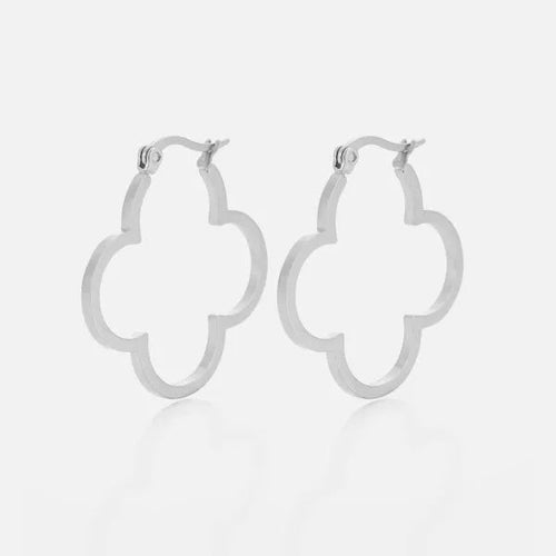 Diese Kleeblatt Hoops Groß Silber sind aus hochwertigem Edelstahl gefertigt. Die Ohrringe sind 3 cm lang. Diese Ohrringe sind perfekt, um all Ihren Looks einen Hauch von Raffinesse zu verleihen. Langlebig, stilvoll und angenehm zu tragen, ist sie ein Muss für jede moderne Garderobe.