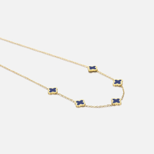 Diese Kleeblätter Halskette Gold/blau ist aus hochwertigem Edelstahl gefertigt. Die Länge der Kette beträgt 40 cm und kann auf 45 cm eingestellt werden. Kleeblattschmuck ist derzeit sehr beliebt. Erweitern Sie Ihre Modeaccessoire-Kollektion mit der Kleeblatt-Halskette Gold.