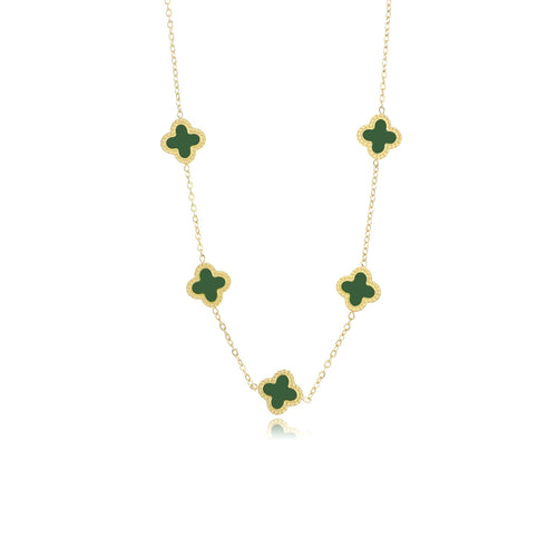 Diese Kleeblätter Halskette Gold/grün ist aus hochwertigem Edelstahl gefertigt. Die Länge der Kette beträgt 40 cm und kann auf 45 cm eingestellt werden. Kleeblattschmuck ist derzeit sehr beliebt. Erweitern Sie Ihre Modeaccessoire-Kollektion mit der Kleeblatt-Halskette Gold.