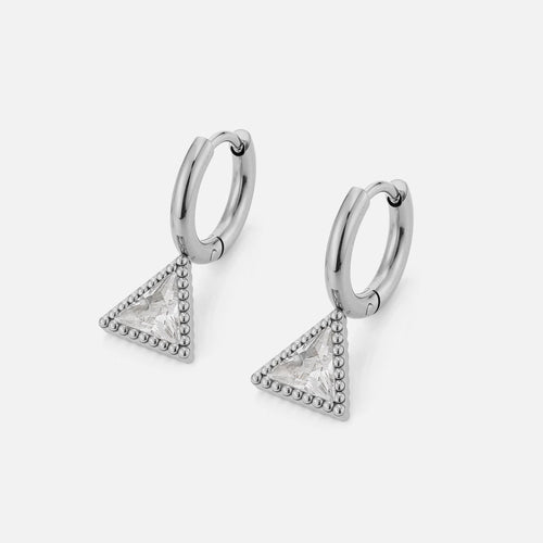 Diese Ohrringe Dreieck Strass Silber sind aus hochwertigem Edelstahl gefertigt. Diese Ohrringe sind perfekt, um all Ihren Looks einen Hauch von Raffinesse zu verleihen. Langlebig, stilvoll und angenehm zu tragen, ist sie ein Muss für jede moderne Garderobe.