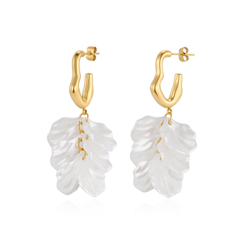 Diese Ohrringe Flora Wave Gold/Weiß sind aus hochwertigem Edelstahl gefertigt. Diese Ohrringe sind perfekt, um all Ihren Looks einen Hauch von Raffinesse zu verleihen. Langlebig, stilvoll und angenehm zu tragen, ist sie ein Muss für jede moderne Garderobe.