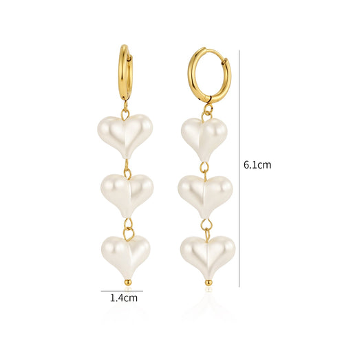 Diese Ohrringe hängende Perle Herzen Gold sind aus hochwertigem Edelstahl gefertigt und sind 6,1cm lang. Perfekt, um all Ihren Looks einen Hauch von Raffinesse zu verleihen. Langlebig, stilvoll und angenehm zu tragen, ist sie ein Muss für jede moderne Garderobe.