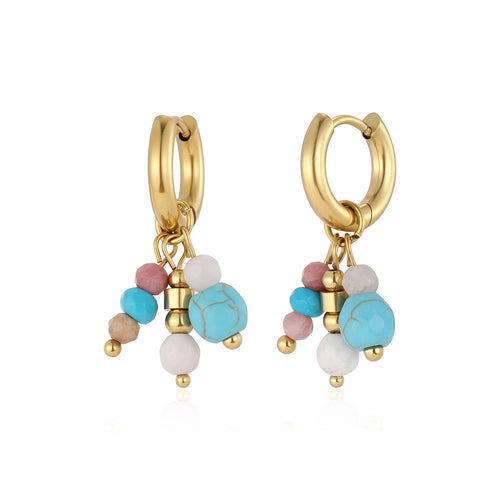 Diese Ohrringe mit blauen Perlen Gold sind aus hochwertigem Edelstahl gefertigt. Diese Ohrringe sind perfekt, um all Ihren Looks einen Hauch von Raffinesse zu verleihen. Langlebig, stilvoll und angenehm zu tragen, ist sie ein Muss für jede moderne Garderobe.