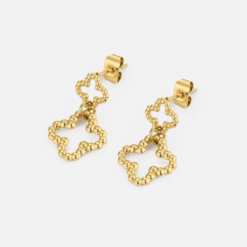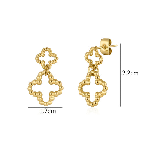 Diese Ohrrstecker Doppel Kleeblatt Gold sind aus hochwertigem Edelstahl gefertigt. Diese Ohrringe sind perfekt, um all Ihren Looks einen Hauch von Raffinesse zu verleihen. Langlebig, stilvoll und angenehm zu tragen, ist sie ein Muss für jede moderne Garderobe.