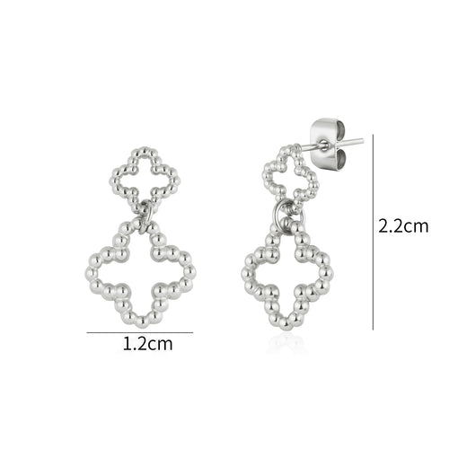 Diese Ohrrstecker Doppel Kleeblatt Silber sind aus hochwertigem Edelstahl gefertigt. Diese Ohrringe sind perfekt, um all Ihren Looks einen Hauch von Raffinesse zu verleihen. Langlebig, stilvoll und angenehm zu tragen, ist sie ein Muss für jede moderne Garderobe.