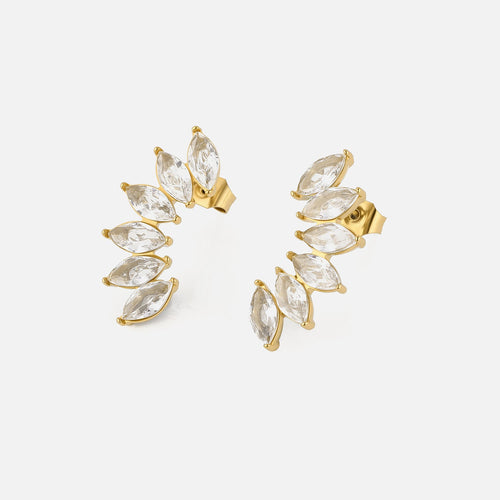 Diese Ohrrstecker mit weißen Kristallen Gold sind aus hochwertigem Edelstahl gefertigt. Diese Ohrringe sind perfekt, um all Ihren Looks einen Hauch von Raffinesse zu verleihen. Langlebig, stilvoll und angenehm zu tragen, ist sie ein Muss für jede moderne Garderobe.