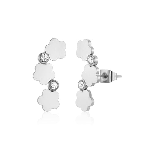 Diese Ohrstecker Blumen mit Steinchen Silber sind aus hochwertigem Edelstahl gefertigt. Diese Ohrringe sind perfekt, um all Ihren Looks einen Hauch von Raffinesse zu verleihen. Langlebig, stilvoll und angenehm zu tragen, ist sie ein Muss für jede moderne Garderobe.