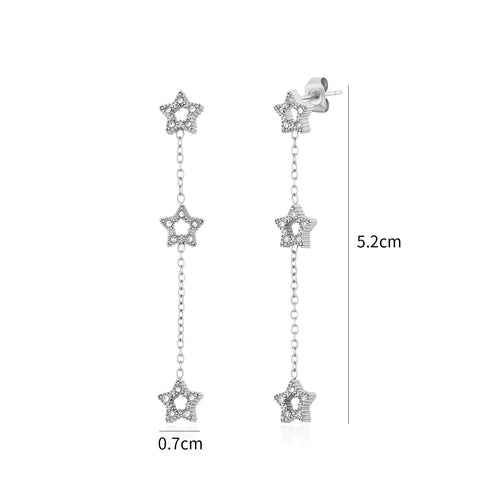 Diese Ohrstecker drei hängende Sterne Silber sind aus hochwertigem Edelstahl gefertigt. Diese Ohrringe sind perfekt, um all Ihren Looks einen Hauch von Raffinesse zu verleihen. Langlebig, stilvoll und angenehm zu tragen, ist sie ein Muss für jede moderne Garderobe.