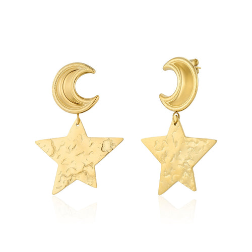 Diese Ohrstecker Mond und Stern Gold sind aus hochwertigem Edelstahl gefertigt. Diese Ohrringe sind perfekt, um all Ihren Looks einen Hauch von Raffinesse zu verleihen. Langlebig, stilvoll und angenehm zu tragen, ist sie ein Muss für jede moderne Garderobe.