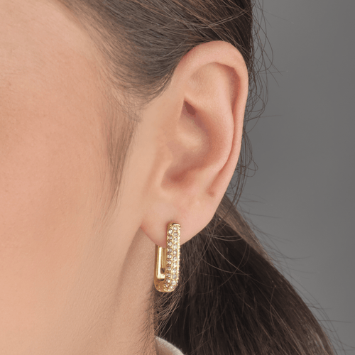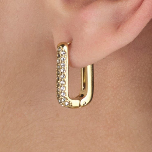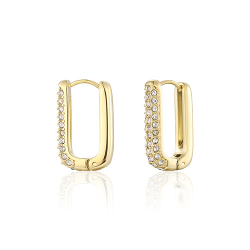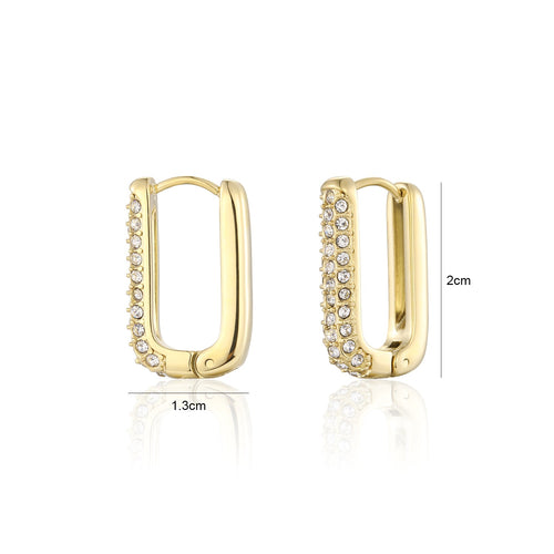 Diese Rechteckige Ohrringe mit Steinchen Gold/weiß sind aus hochwertigem Edelstahl gefertigt. Die Ohrringe sind 2 cm lang. Diese Ohrringe sind perfekt, um all Ihren Looks einen Hauch von Raffinesse zu verleihen. Langlebig, stilvoll und angenehm zu tragen, ist sie ein Muss für jede moderne Garderobe.