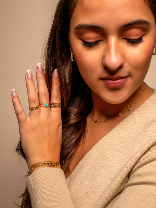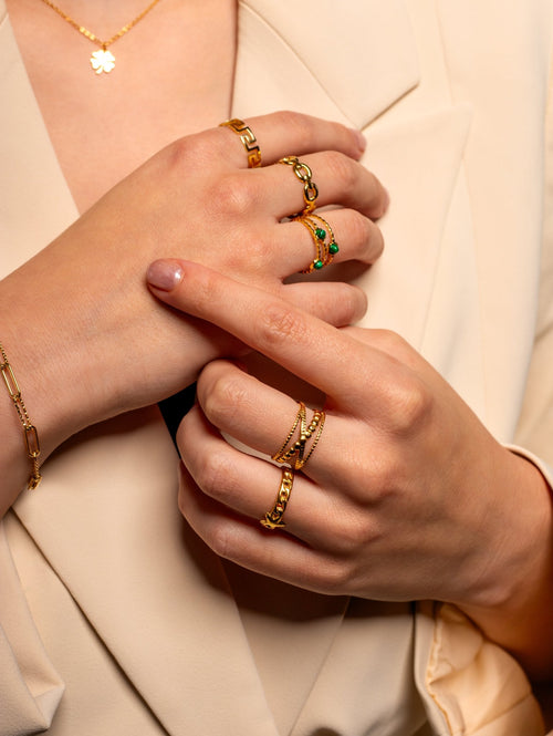 Diese Ring Muster Gold ist aus hochwertigem Edelstahl gefertigt. Der Ring ist verstellbar auf deine gewünschte Größe. Diese Ring ist perfekt, um all Ihren Looks einen Hauch von Raffinesse zu verleihen. Langlebig, stilvoll und angenehm zu tragen, ist sie ein Muss für jede moderne Garderobe.