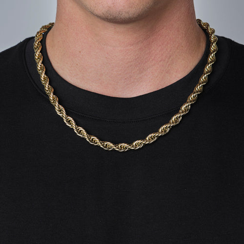 Diese Rope Kette 8 mm Gold Herren ist aus hochwertigem Edelstahl gefertigt. Die Länge ist nicht verstellbar.